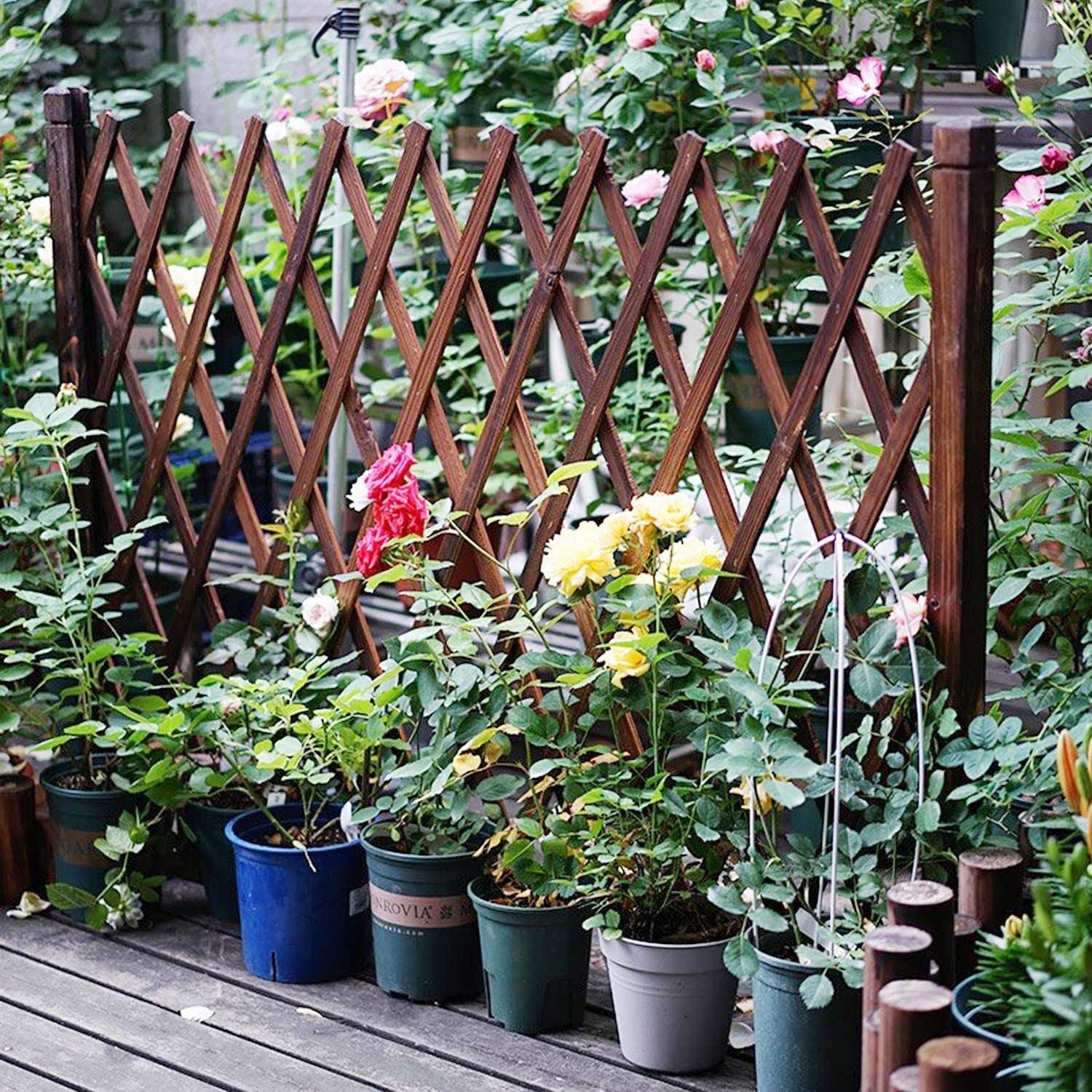 tonchean 2 pack expandable wood garden fence retractable garden trellis fence plant screen freestanding expanding patio fence