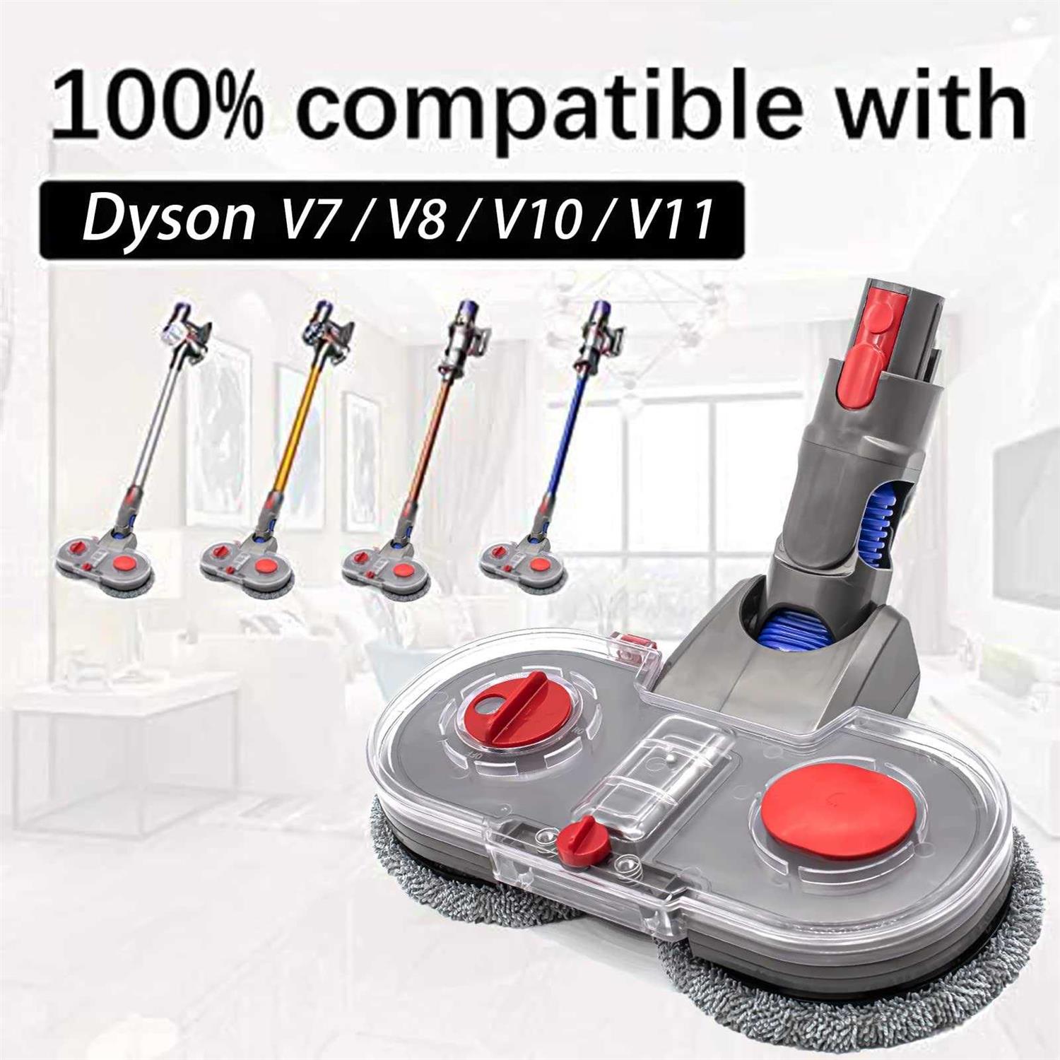 The Dual Spinning Mop head – attachment for Dyson vacuum cleaner V7 V8 V10 and V11 models, allowing you to vacuum and mop simultaneously. It have a water tank to wet floor mopping. Tough on Dirt – Spinning at a dizzying 160 RPM, the scrubbing mop head can easily cut through dirt and stubborn grime on your wood, vinyl and ceramic tile smooth floors. Efficient Cleaning – With a high powered dual spin motor, it cleans incredibly efficient up to 7-10 cubic meters per minute, saving your time and labor. Easy for Maintenance – Made of nanoscale nylon cloth, the washable mop pads are effective to collect dust and water without stains, streaks or marks on the floor.