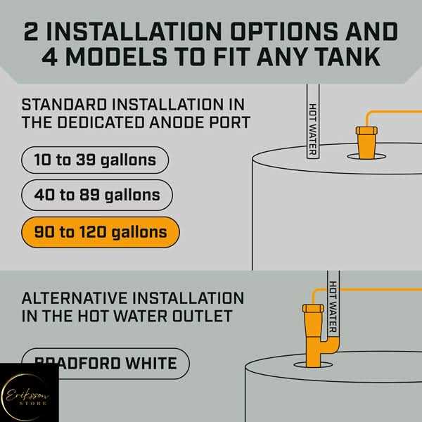 Water Heater Parts by Corro-Protec. Details:The Corro-Protec 90-120 gallon anode is designed specifically for all models of electric and gas water heaters with capacities ranging from 90 to 120 gallons. The stem is longer than the 40 to 80 gallon model, which provides optimal protection for larger tanks. The Corro-Protec protection system prevents and stops corrosion inside the hot water tanks. The forced current anode has a very high level of efficiency and adapts to all new tanks as well as those already installed.