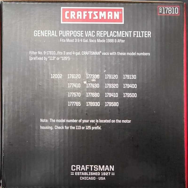 This manufacturer-approved filter (part number 17810) is for wet/dry vacuums. Filter 17810 traps the dust and debris from the exhaust air. Follow the instructions in the owner’s manual when replacing this part.