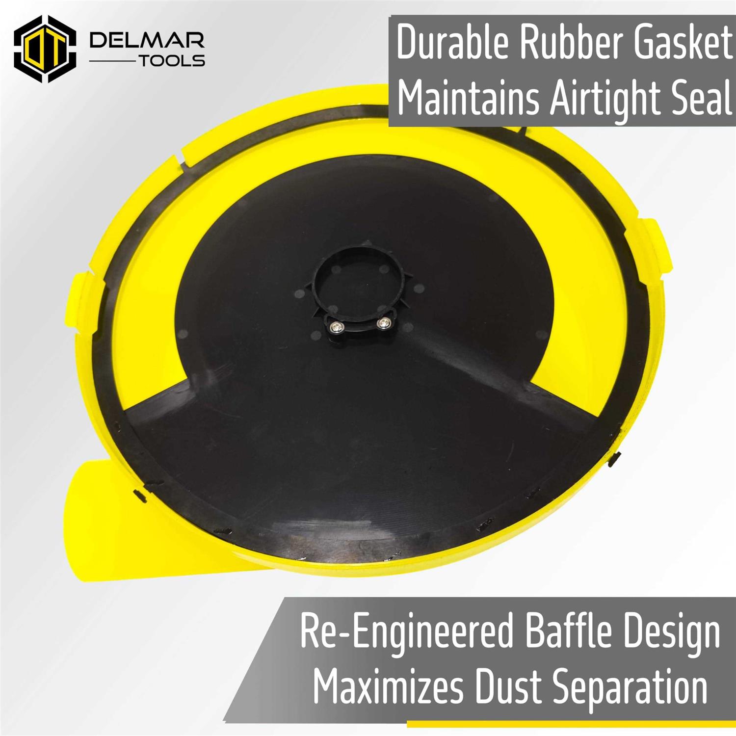 Delmar Tools Patent Pending Shop Vacuum Dust Separator, Included 90° Adapter and Hose, Attaches to 5 Gallon Buckets in Seconds, Engineered for Maximum