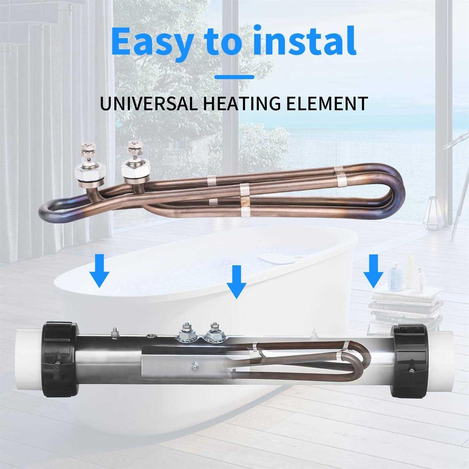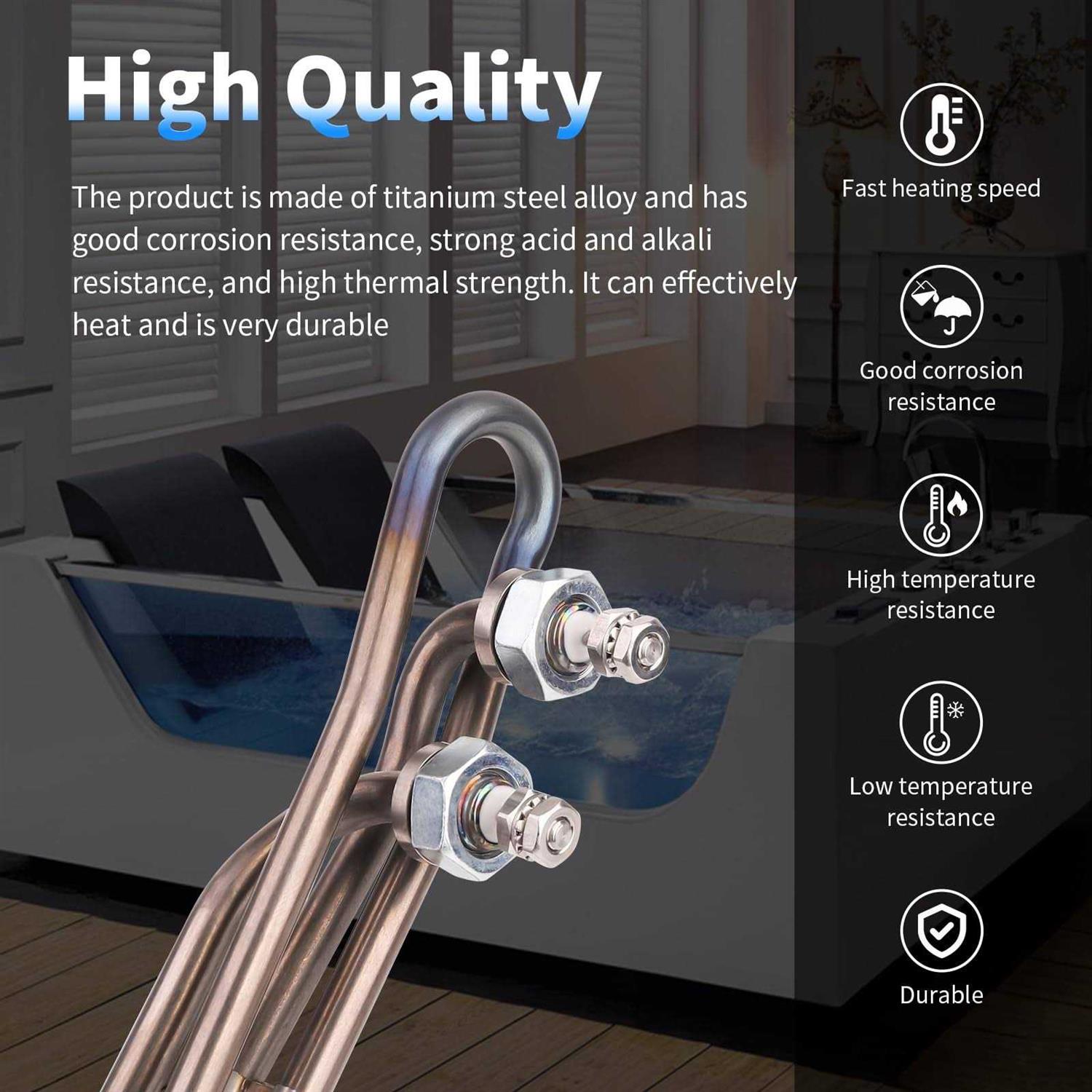 【Easy Install 】Easily install the heating element in a short period of time. Just screw it on and it will work! Note: The heater shell must be a Flo-Thru metal tube 【Function】hot tub heater replacement can repair heating problems in the hot tub, with the ability to maintain a constant temperature and quickly heat the required area 【Excellent Choice】 The 5.5kw 240v hot tub heating element can quickly heat your hot tub pool or spa, allowing you to better enjoy bathing, resist cold troubles, and enjoy the warmth of life. 【High Quality】 The spa heater element are made of titanium steel, which has good corrosion resistance and high thermal strength. And it is very durable. 5.5kw, 240 volt universal heating element replacement for balboa spa