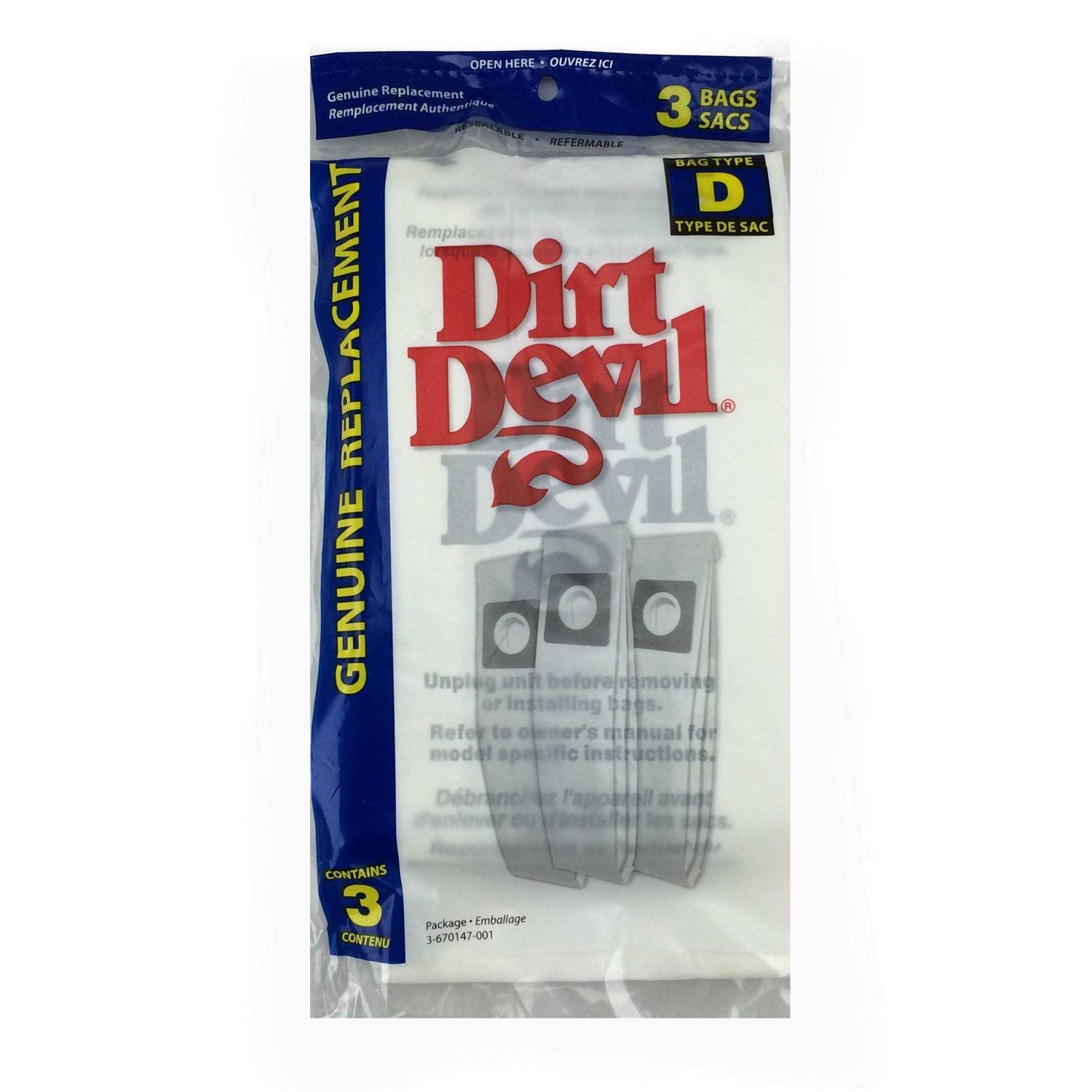 Type D replacement bags for your Dirt Devil Royal Stick Vacuum that will hold all the dirt and pet hair you need to vacuum up. Easy to install and will fit perfectly.