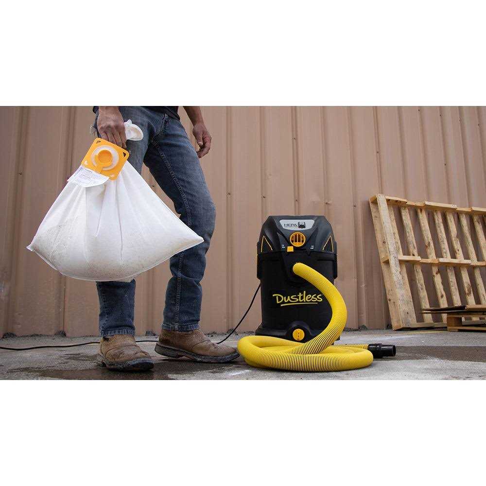 Rated at 0.5 mic of filtration, it will capture fine airborne dust and water particles. When used with a certified HEPA vacuum is safe for the disposal of hazardous material such as silica, lead, asbestos and hexavalent chromium. It will retain its strength when wet and will hold 30 lbs. of dust, water and slurry. As each vacuum port is different, you may need to trim the cardboard to fit your individual vacuum. When you are finished, simply seal the bag with the sticker and dispose. Includes two 8 Gal. to 10 Gal. Wunderbags.
