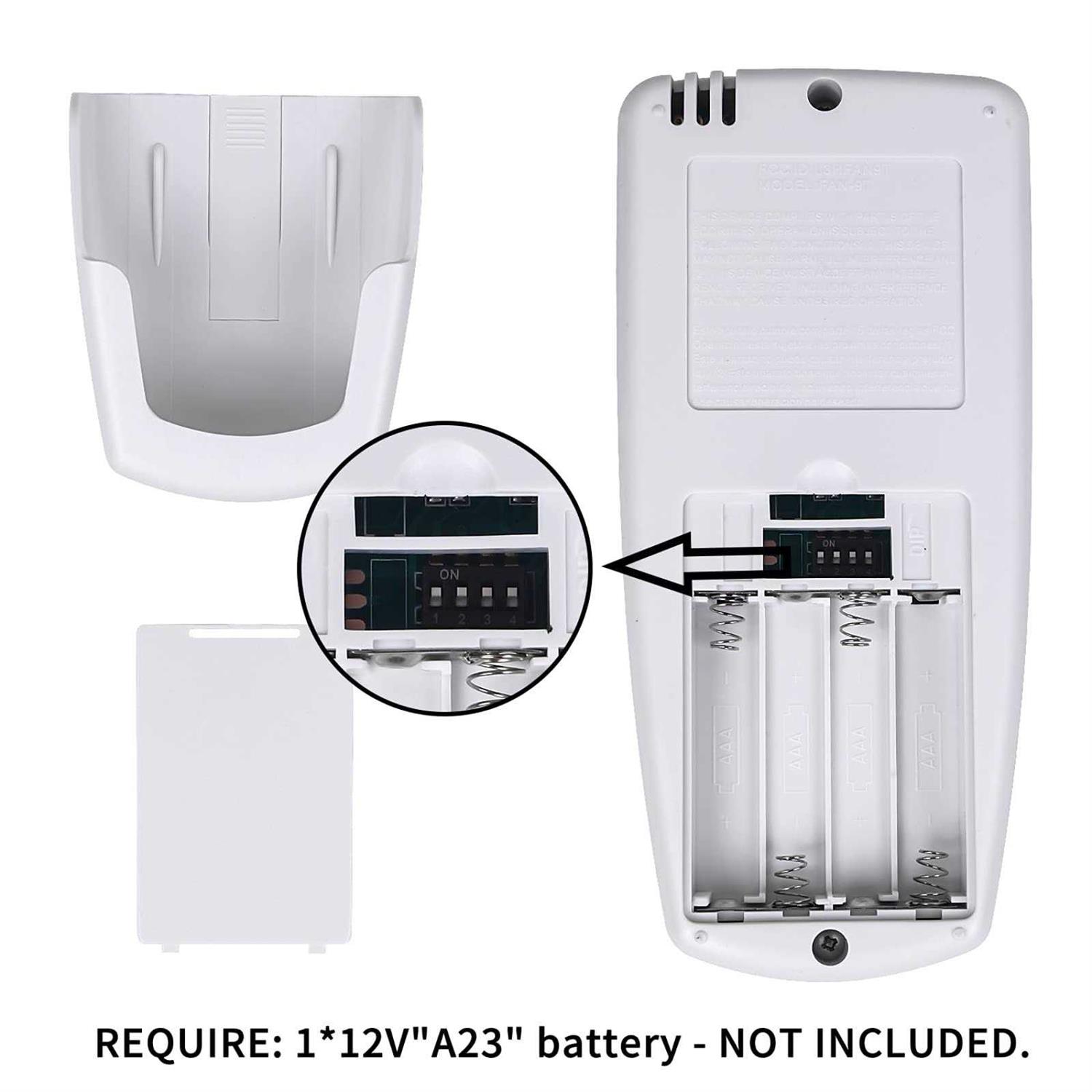 Very sorry for any inconvenience has brought to you. FAN AUTO mode adjusts the speed automatically based on the temperature setting you select which will display on LCD. BLUE BUTTON – Adjust and change the speeds of fan from High to Low and Off. The yellow button can control the ON/OFF or brightness of the light. LIGHT TIMER buttons can set the sleep time from 0.5 to 24 hours, in one hour increments. Reverse button can reverse the airflow direction of the fan. Ventilate your room better. USE 4 “AAA” 1.5V BATTERIES – But not includes. Notice this remote control doesn’t have “Fan Time” function, it has “Fan Reverse” function. Come with instructions, before use, please set the frequency of the remote control to be the same as that of your original remote control. The dip switch of the remote control is in the battery box. the replacement of Hampton bay ceiling fan remote control fan9t..
