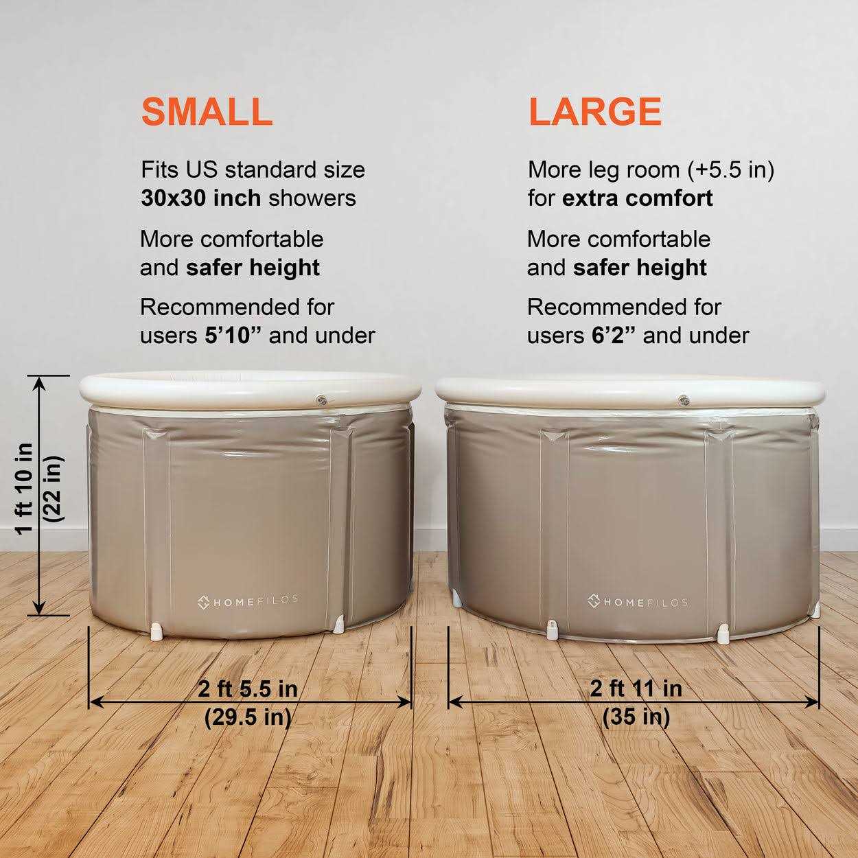 The Homefilos Portable Bathtub is an easy to set up and use portable bathtub designed for use in homes without a bathtub. The Homefilos Portable Bathtub was designed with maximum comfort and ease of use in mind. The Small-size fits inside standard shower stalls and even snuggly inside minimum size American showers (30x30in) to enable users to easily take a bath. The Large-size is perfect for people with larger showers who want more legroom.
