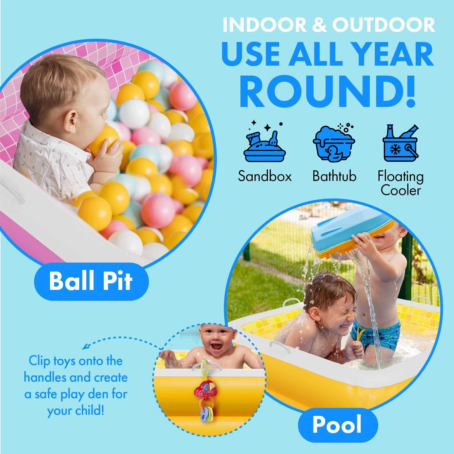 Inflatable Baby Pool with Blow Up Padded Floor, Grip Handle Bars and Drain
