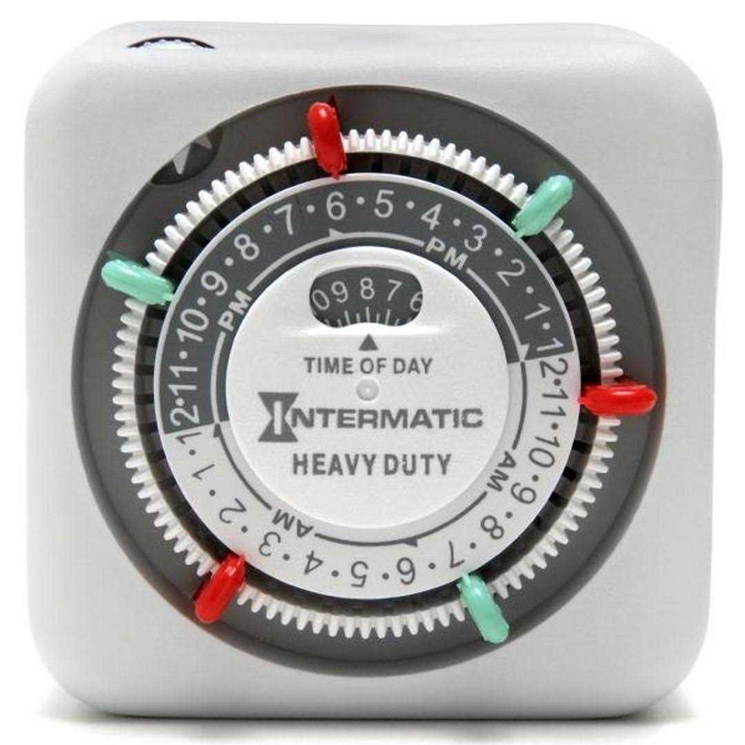 The heavy duty indoor timer by intermatic is ideal for automatically controlling air conditioners, personal computers, heaters, heavy-duty appliances and metal halide and hps lighting fixtures. It plugs directly into a wall outlet with 3-prong grounded plug and receptacle. Color coded trippers make it easy to program.