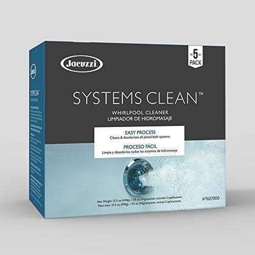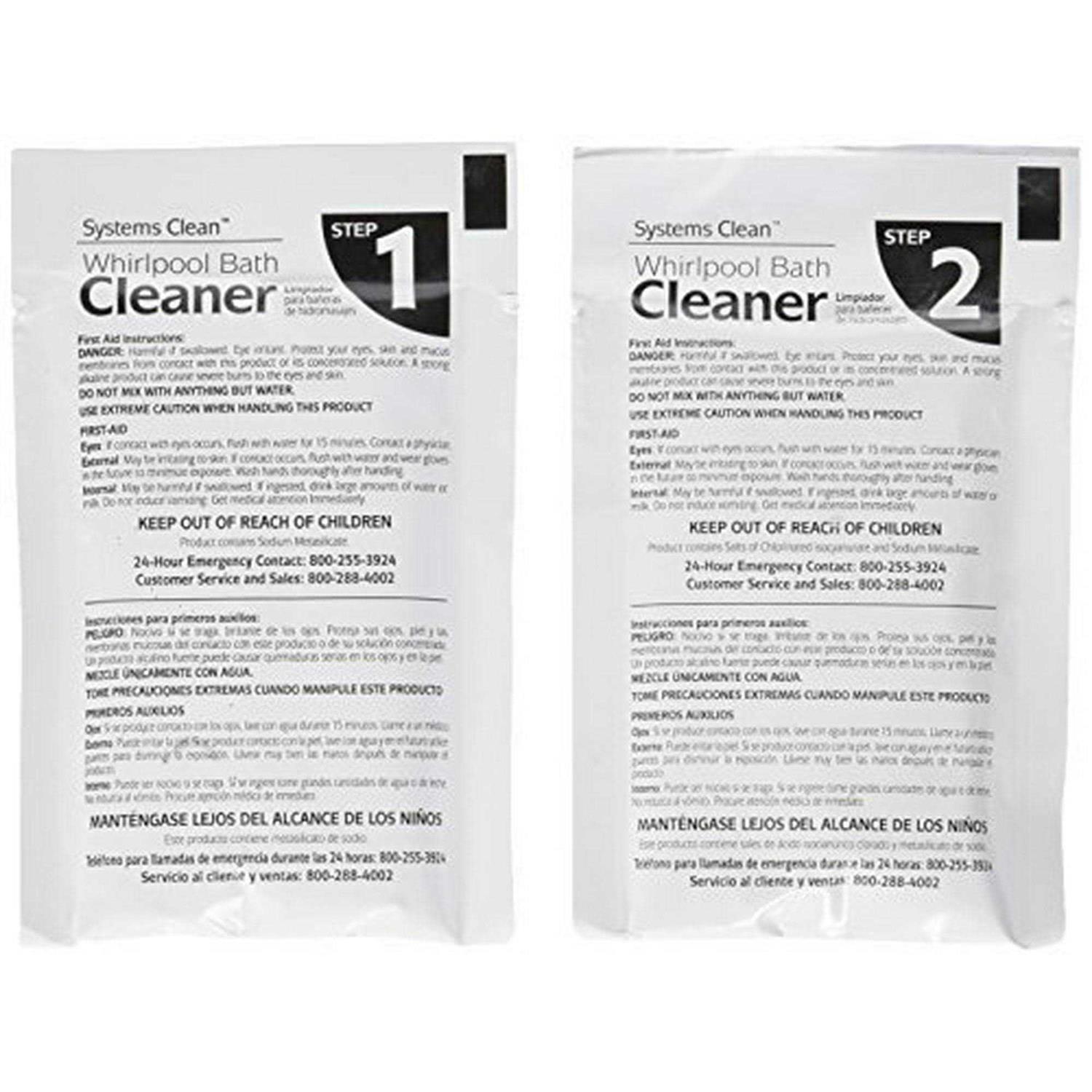 Pool & Spa Replacement Parts by Jacuzzi. Details: Systems clean minimizes the build-up of residuals, such as soap scum, bath and body oils inside the bath’s pipes, pumps, fittings and circulation system. Systems Clean by Jacuzzi is a two part plumbing system cleaner made especially for whirlpool baths. Systems Clean minimizes the build-up of residuals, such as soap scum, bath and body oils, and dirt from inside the whirlpool baths pipes, pumps, fittings, and circulation system. It is recommended that a whirlpool bathtub be cleaned at least twice a month.