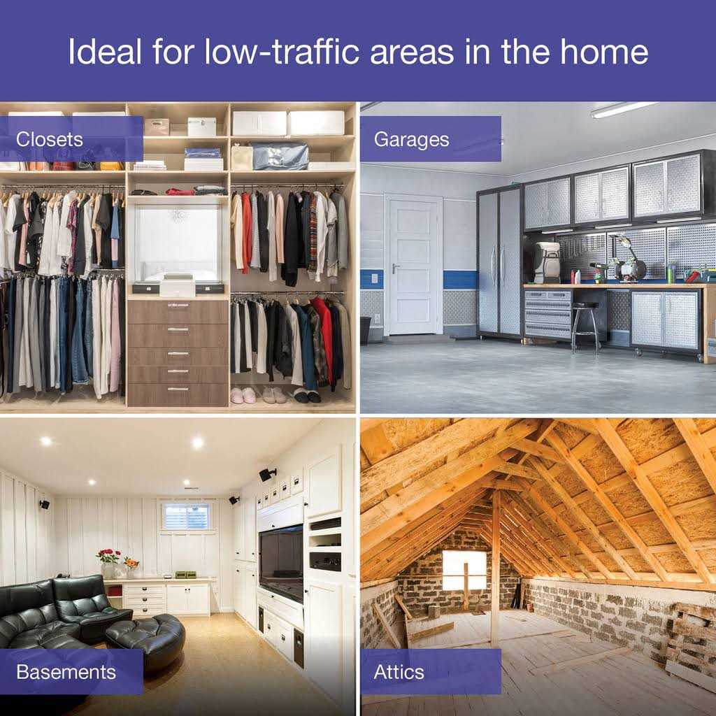 - Save energy by using in closets, attics, basements, and other low-traffic areas to ensure the light is never left on for a long time