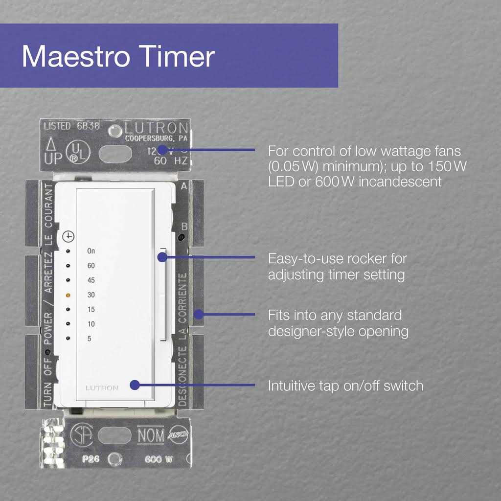 The Maestro Countdown Timer helps you save energy and adds simple automation to your living space. It can be set to operate fan or light for 5-60 minutes before turning off automatically, and it has orange LEDs that indicate time remaining before turn-off. Use the timer on an exhaust fan in the bathroom to eliminate moisture. Never forget to turn off your fan, or make unnecessary trips back to the bathroom. Another convenient place to use the Maestro Countdown timer is in the garage to keep the light on as you get into your vehicle and have the timer turn off your light automatically after you leave. No need to check to see if you remembered to turn the light off. Save energy by using in closets, attics, basements, and other low-traffic areas to ensure the light is never left on for a long time.