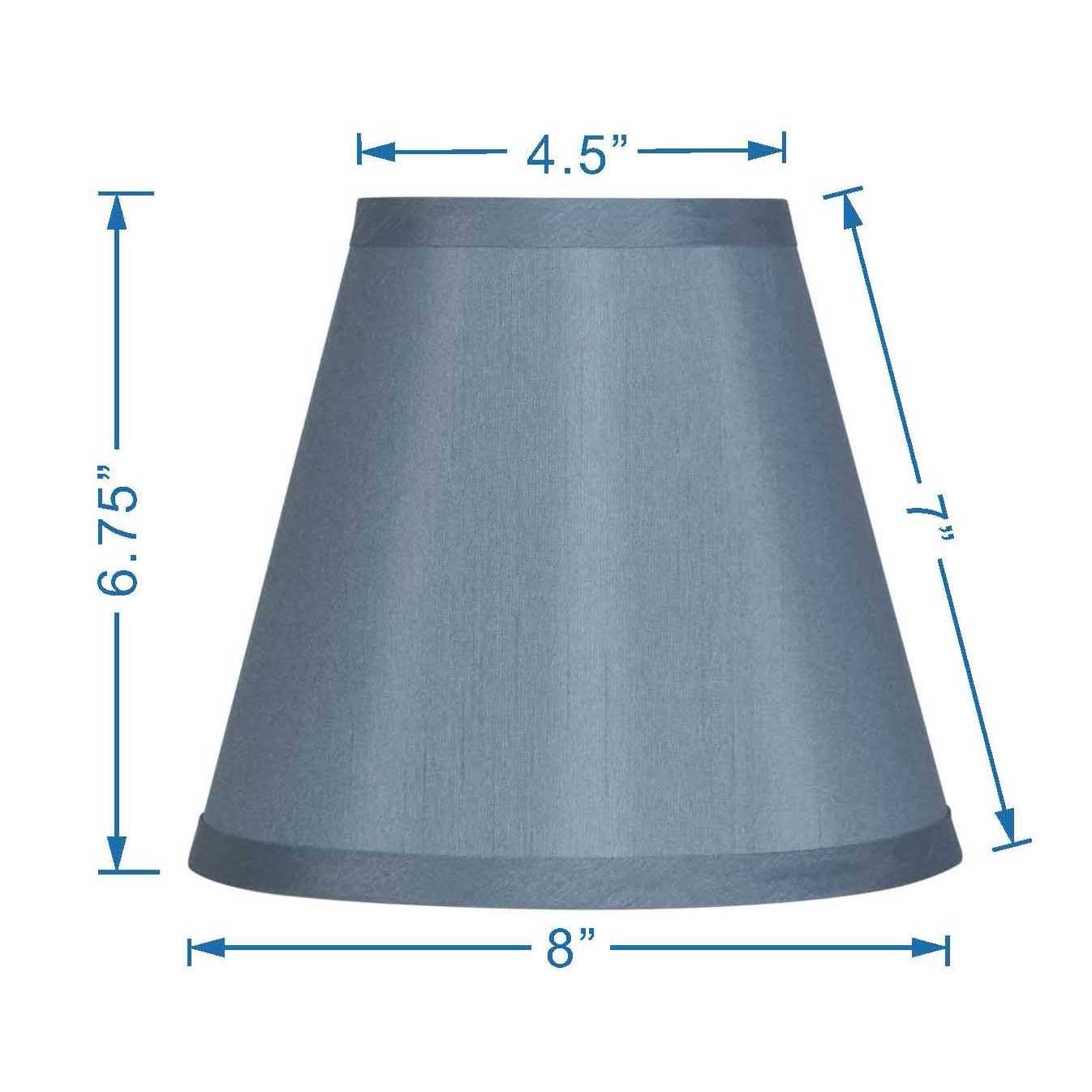 The Mainstays 4.5x8x7 inch accent shade, slate blue can easily update the look for your new or existing lamp. The slate color of this shade will refresh and add a pop of color to your accent lamp or pair it with another nix and match Mainstays accent lamp base. The Mainstays accent shade, slate blue features an uno fitter, which eliminates the need for a harp and finial. Simply place shade on top of the lamp base socket before the bulb. The Mainstays accent shade, slate blue is 7 inches in height and 8 inches in diameter that is reinforced with a hardback designed to help maintain the shade’s shape. Add a decorative touch to any room in you home with this shade to help brighten up areas where you enjoy working or relaxing.
