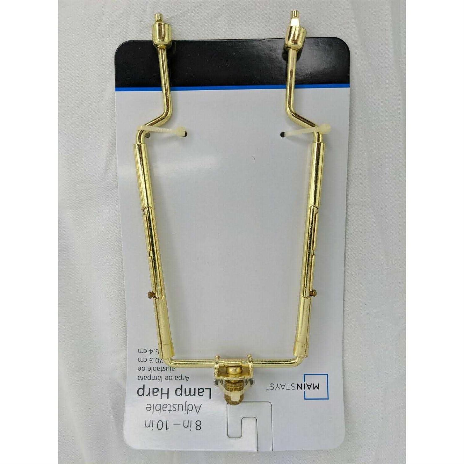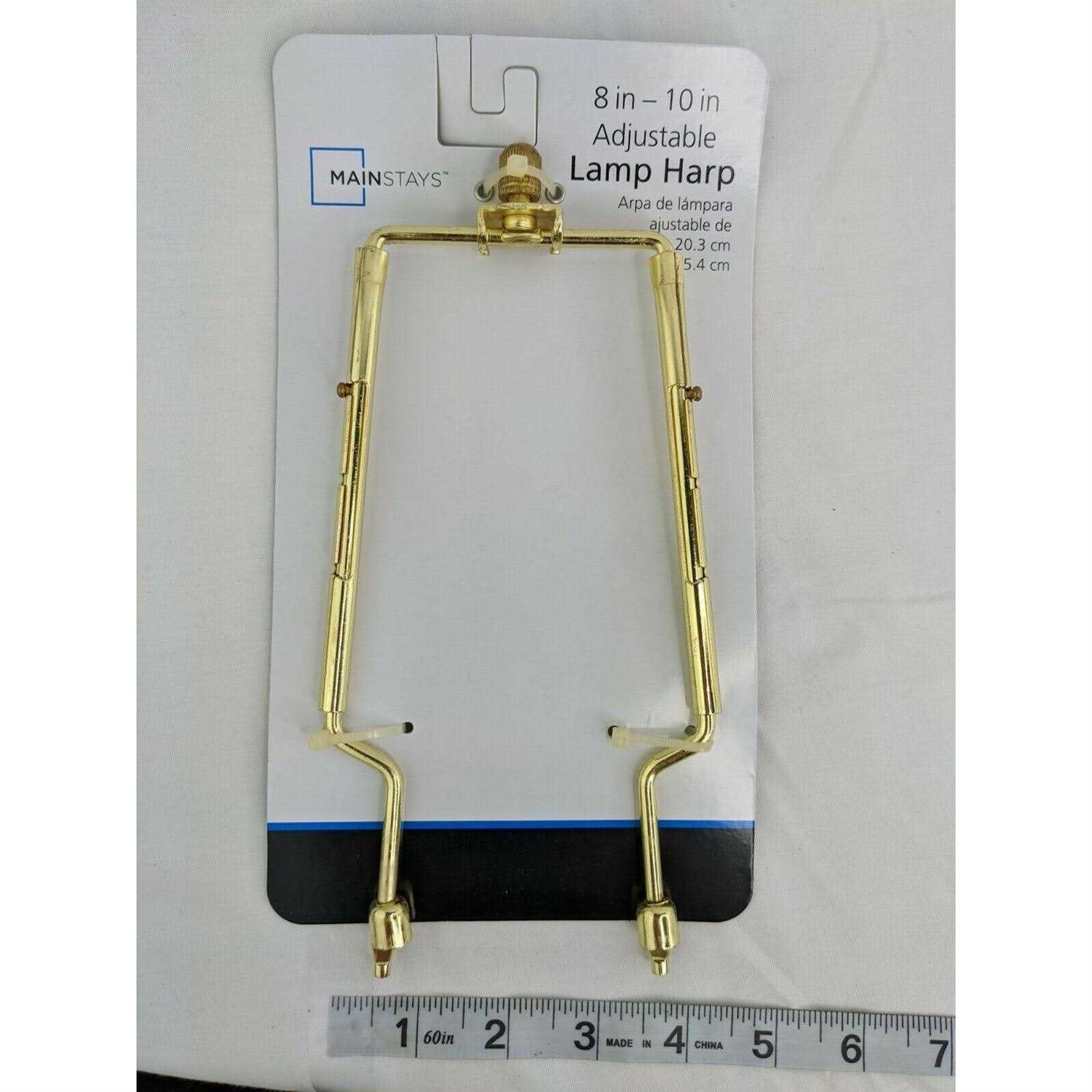 The Mainstays Adjustable 8 to 10 Brass Harp with Finial attaches to Spider fitting shades. Lamp harps are the metal wire lamp part that mounts below the lamps socket and supports lamp shade. The Mainstays Adjustable 8 to 10 Brass Harp with Finial is perfect for a wide variety size lamp and appropriate shade to reposition and give your lamp a quality adjustment. The Mainstays Adjustable 8 to 10 Brass Harp and Finial features a beautiful polished brass finish, simple finial, and the ability to easily adjust height of harp. The Mainstays Adjustable 8 to 10 Brass Harp with Finial helps takes the guess work out of finding the correct harp height for your lamp and shade. Easy to install.