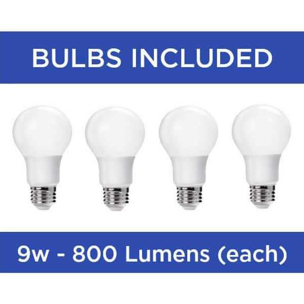 - Includes four 3000K, 800 lumen each (source), Title 24 certified LED bulbs.