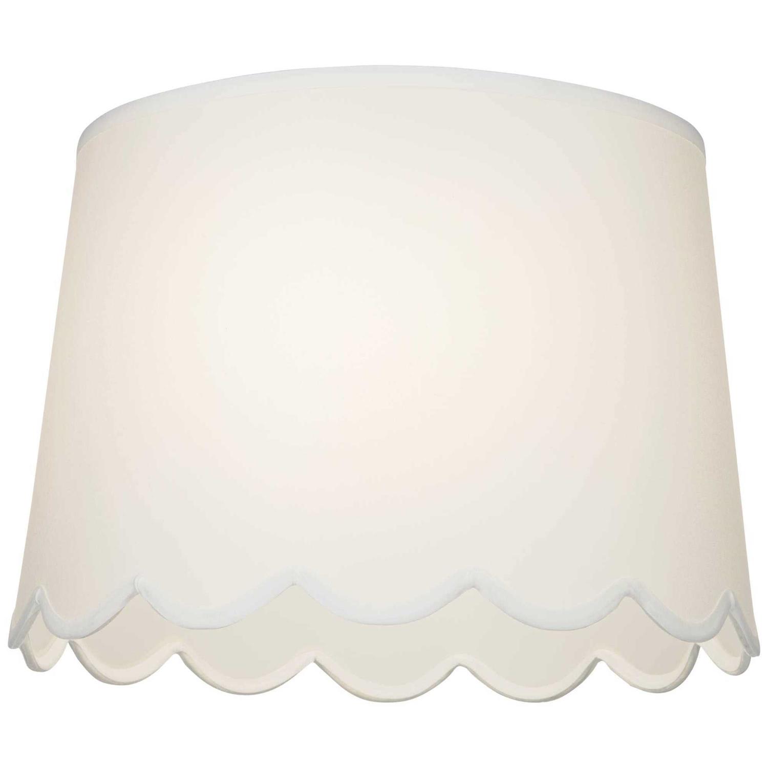 A hardback empire lamp shade offers an elegant aesthetic with its scalloped bottom edge. Covered in a beautiful white vellum fabric, this scalloped empire shade puts off a bright and soothing glow across tables and more. The polished brass finish spider prong fitter ensures a hint of warm metallic and a solid fit to customize a favorite lamp.
