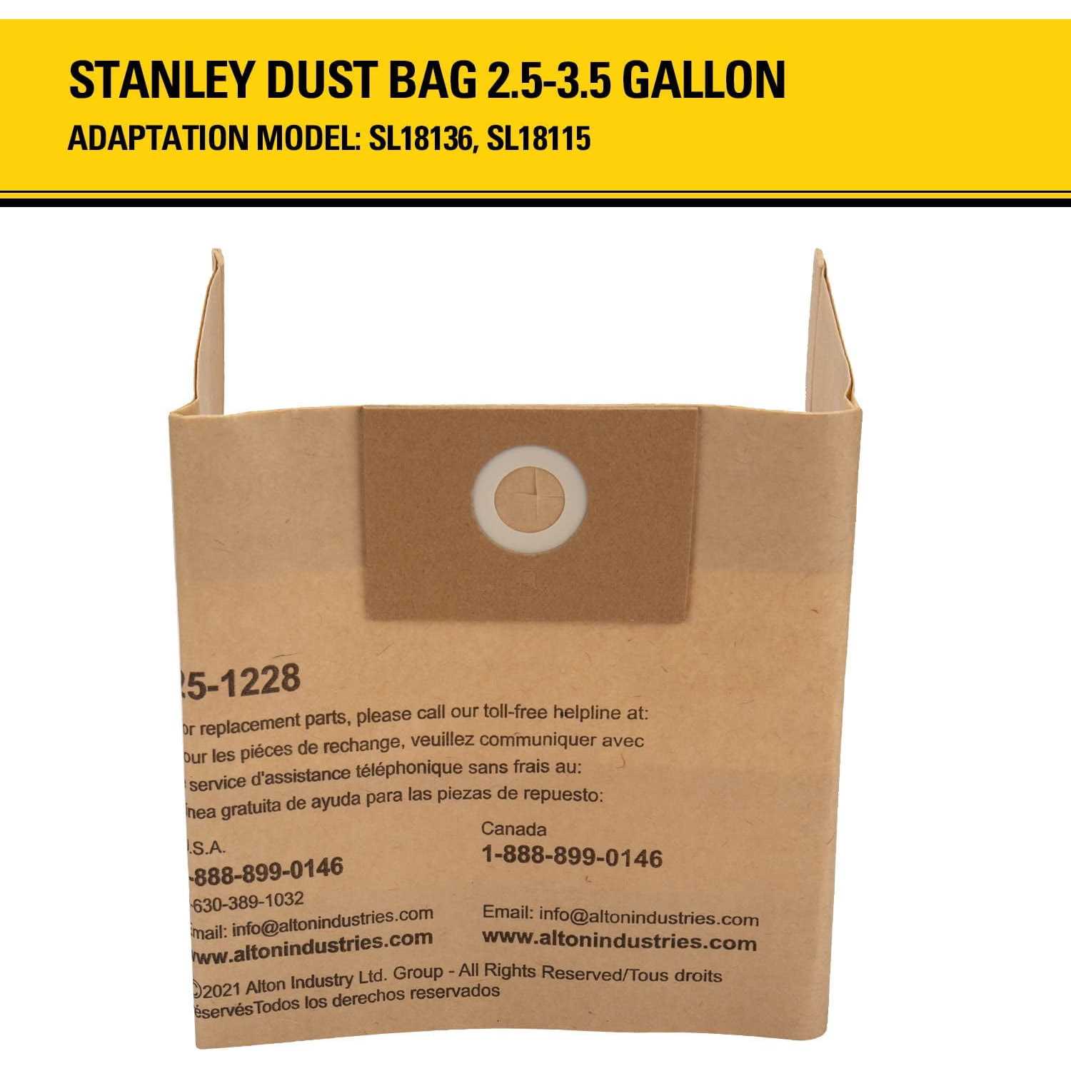Stanley 25-1228 Disposable Filter Dust Bag Fits 2.5-3.5 Gallon Wet/Dry Vacuum CL