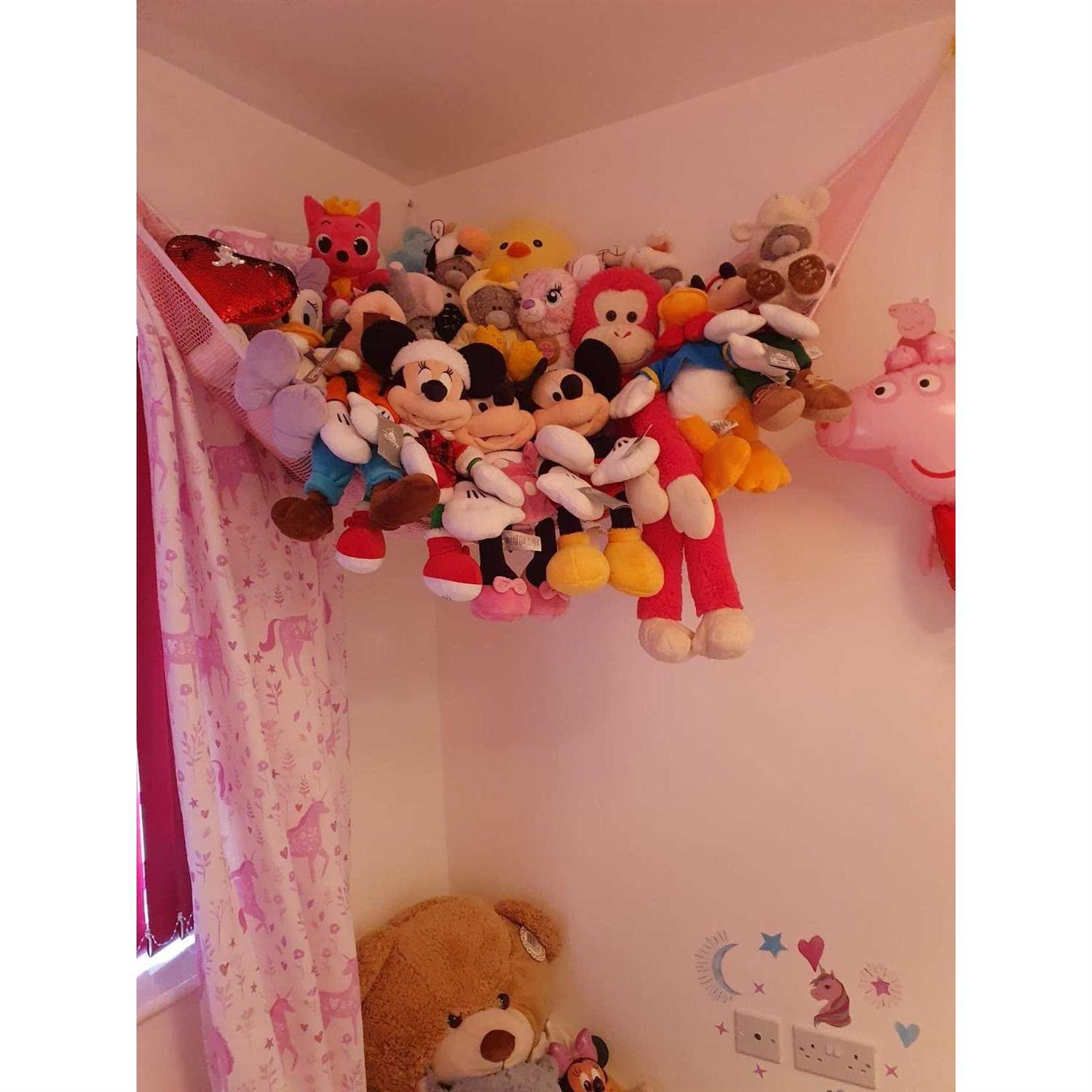- Great space saving idea, holds a lot of soft toys, eliminates bedroom, playroom, and bathtub clutter while neatly organizing toys.