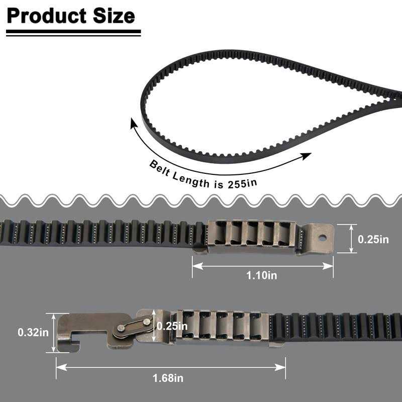 【Perfect Fit】Part number: 41A5434-13, 041A5434-13, 041A5434-13A,Compatible with Chamberlain / liftmaster / Sentex/ Whisper garage door opener models 2500, 2580, 2280, 3500, 3580, 3280, WD822K, WD922K, WD912K. 【Garage Door Opener Belt】Compatible with various LiftMaster and Chamberlain models, including 41A5434-13, 041A5434-13, and 041A5434-13A. Belt length is 255 inches with 20 grooves every 6 inches. 【High Quality】Experience faster and smoother garage door operation with our 41A5434-13A drive belt, designed to improve the rate at which your garage door raises and lowers. 【Easy To Install】Easy to install and remove, comes with installation instructions, our 8-foot Garage Openers belt works seamlessly with your garage door opener rail for a quiet and relaxing home environment.