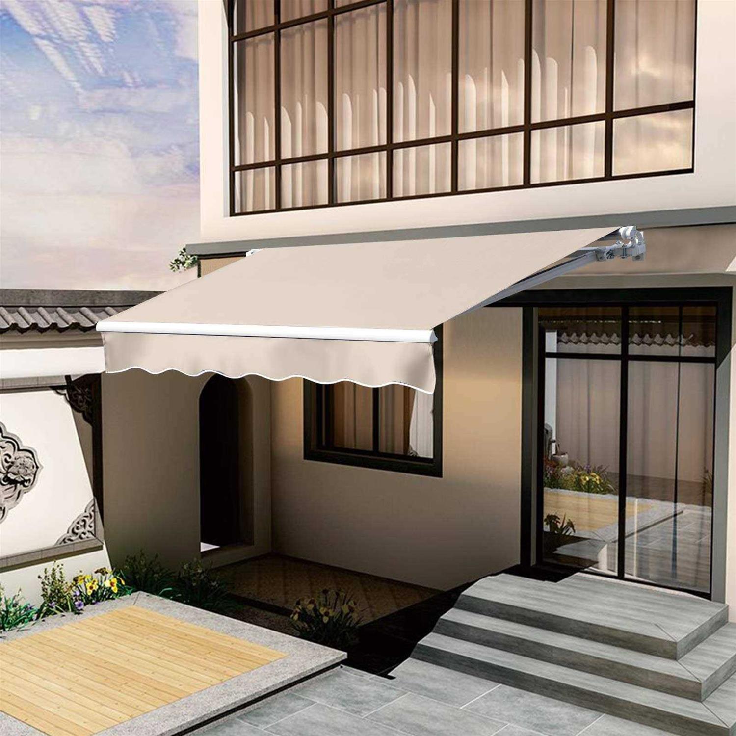 VUYUYU Patio Awning Retractable Awning Cover Sunshade Shelter Outdoor Canopy with Crank Handle and Water-Resistant Polyester for Courtyard