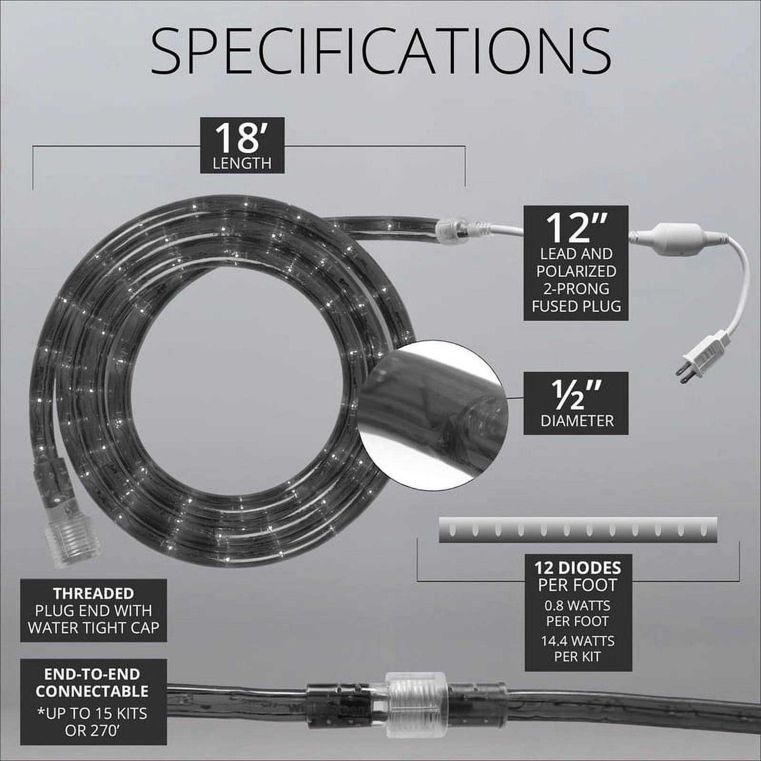 Warm White LED Rope Light, 18 ft